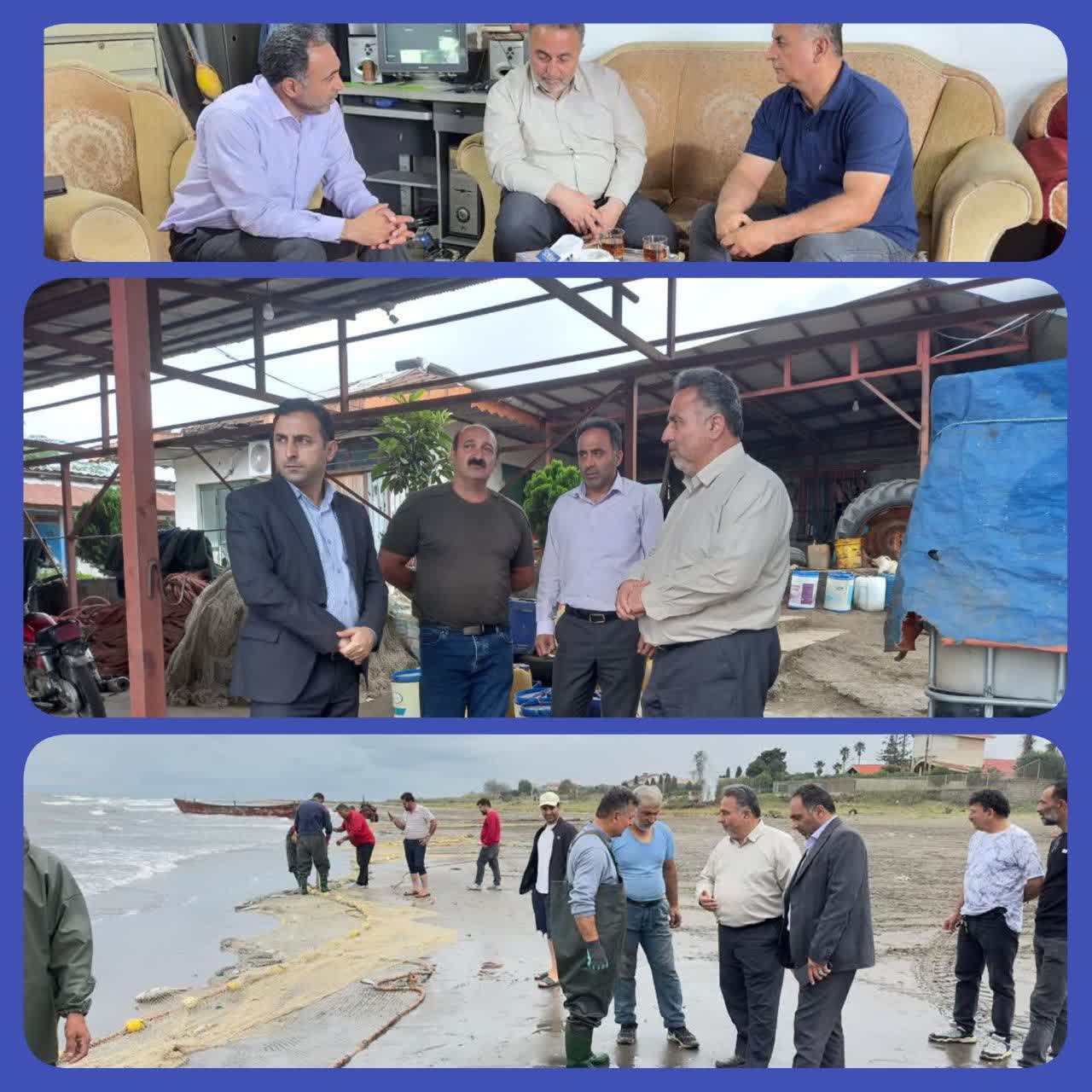 بازدید میدانی معاون شیلات مازندران از تعاونی‌های پره صیادی تنکابن و رامسر با هدف رفع مشکلات صیادان